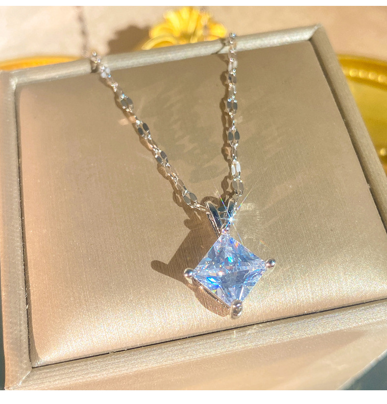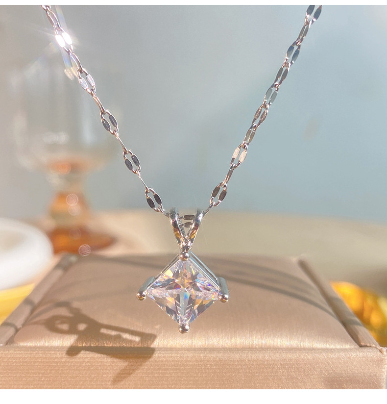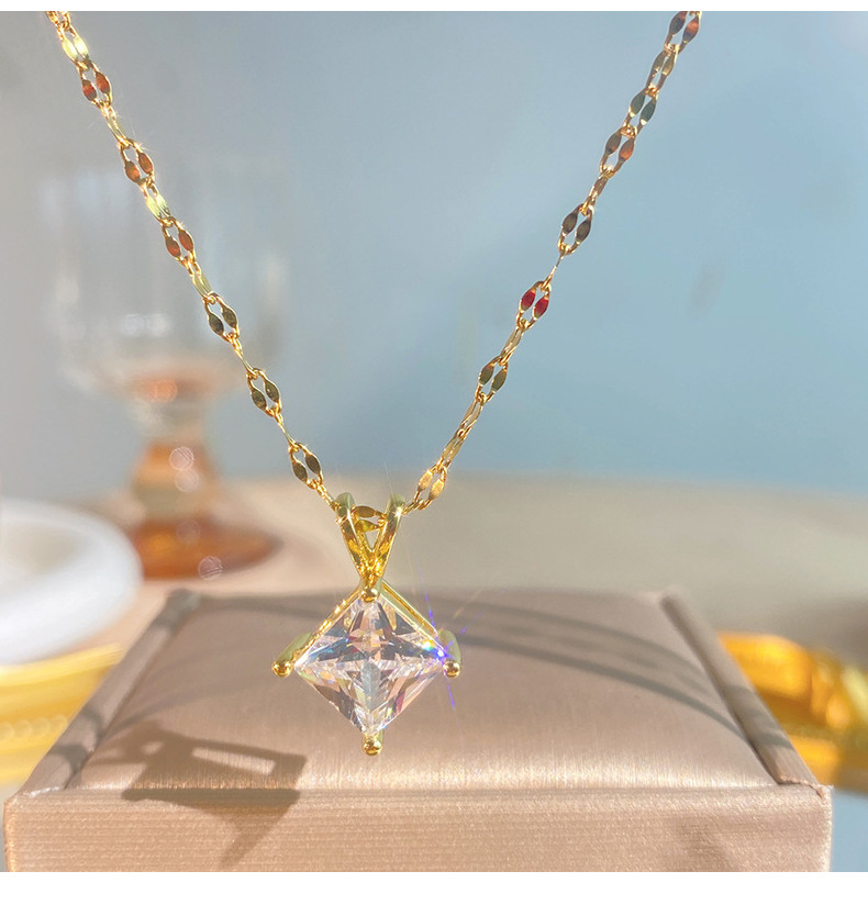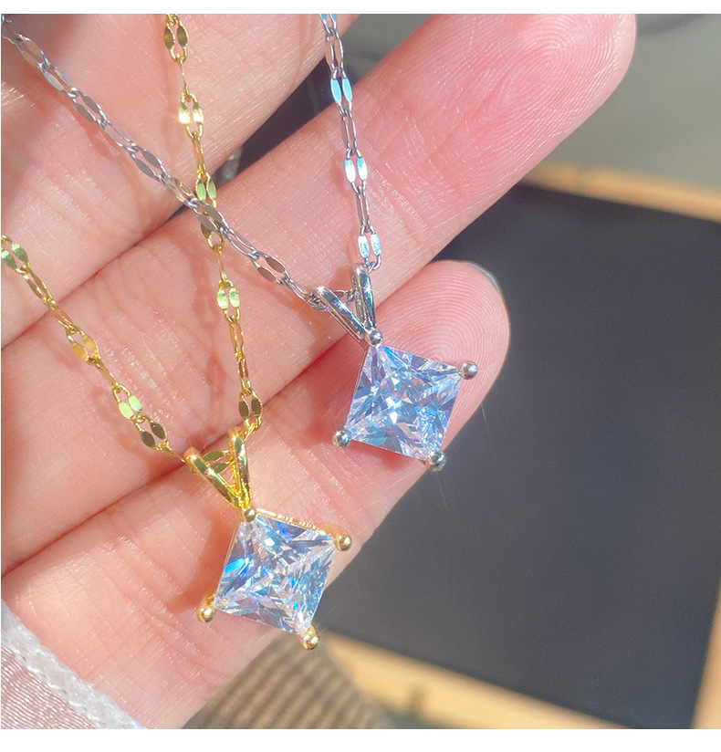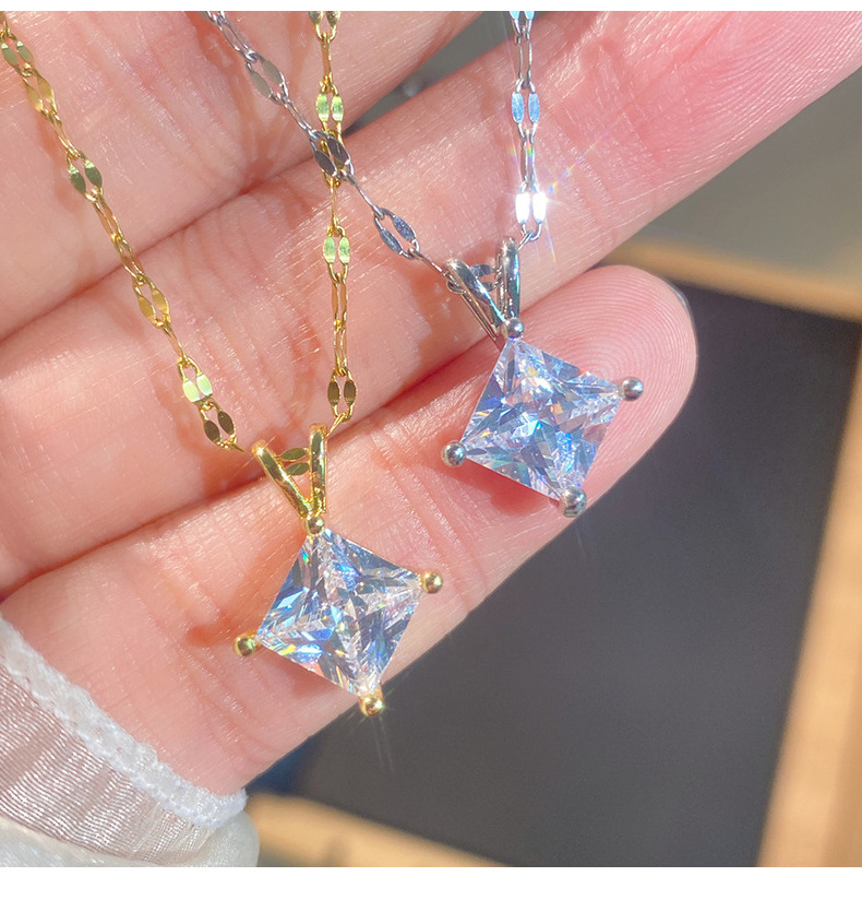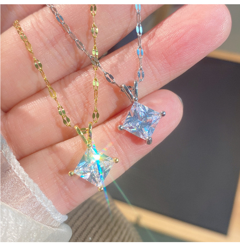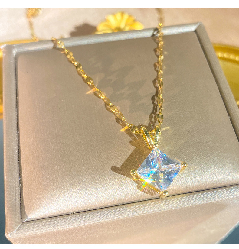 Geometric Zircon Square Pendant V-Shaped Necklace For Little Girls
