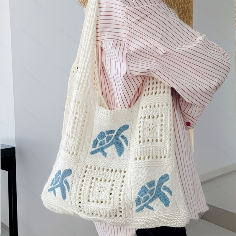 Knitted Retro Hollow Hand-Knitted Blue Turtle Knit Bag